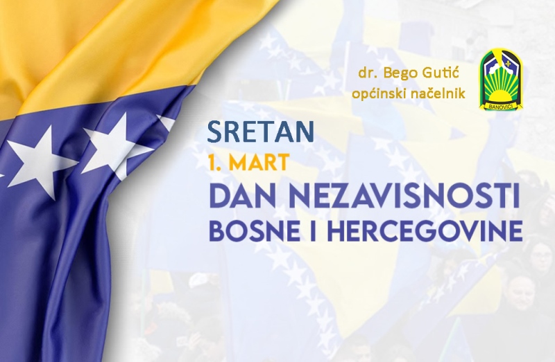 Svojim sugrađanima – Banovićanima, svim Bosancima i Hercegovcima, odnosno svima onima koji ovu zemlju vole i smatraju svojom domovinom od srca čestitam 1. mart, Dan nezavisnosti Bosne i Hercegovine.