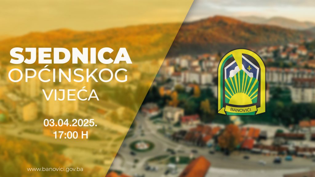 Sjednica će se održati dana 03.04.2025. godine, četvrtak, sa početkom u 17:00 sati u prostorijama BKC-a Banovići.