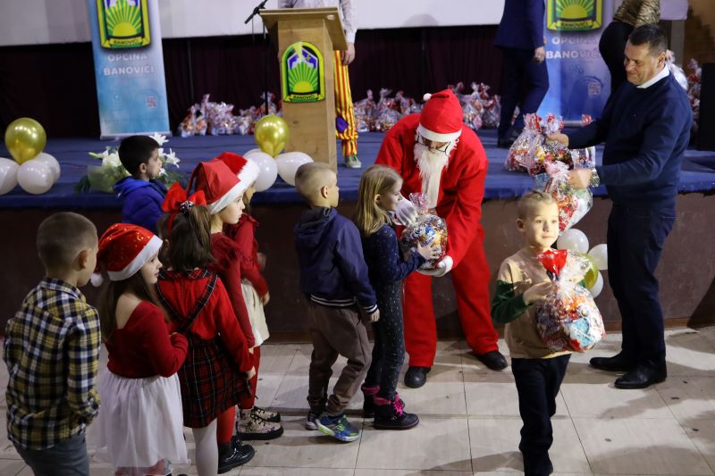 Novogodišnje paketiće općine Banovići dobilo je više od 200 banovićkih prvačića koji pohađaju pet osnovnih škola na području naše Općine i Područnu školu „Ribnica“ Zavidovići. Podjela je upriličena u sali BKC-a, u okviru manifestacije „Dječija Nova godina“. Paketiće su mališanima uručili Djeda Mraz i općinski načelnik dr. Bego Gutić.