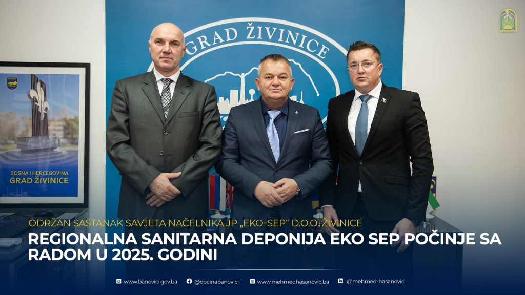 Danas je u Živinicama održan sastanak Savjeta načelnika i gradonačelnika osnivača Javnog preduzeća „Eko-Sep“. Sastanku su prisustvovali gradonačelnik Živinica Began Muhić, načelnik Općine Banovići Mehmed Hasanović, načelnik Općine Kladanj Edis Šarić, te v.d. direktor J.P. „Eko-Sep“ Selmir Šljivić.