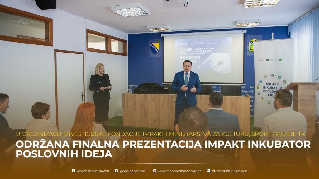 U Banovićima je uspješno održana finalna prezentacija poslovnih ideja mladih ljudi, koja je realizovana u okviru programa “Inkubator poslovnih ideja”. Ovaj program pruža priliku mladim poduzetnicima da predstave svoje inovativne ideje i osvoje sredstva za realizaciju svojih poslovnih planova. Program je podržan od strane investicijske Fondacije IMPAKT i Ministarstva za kulturu, sport i mlade TK.